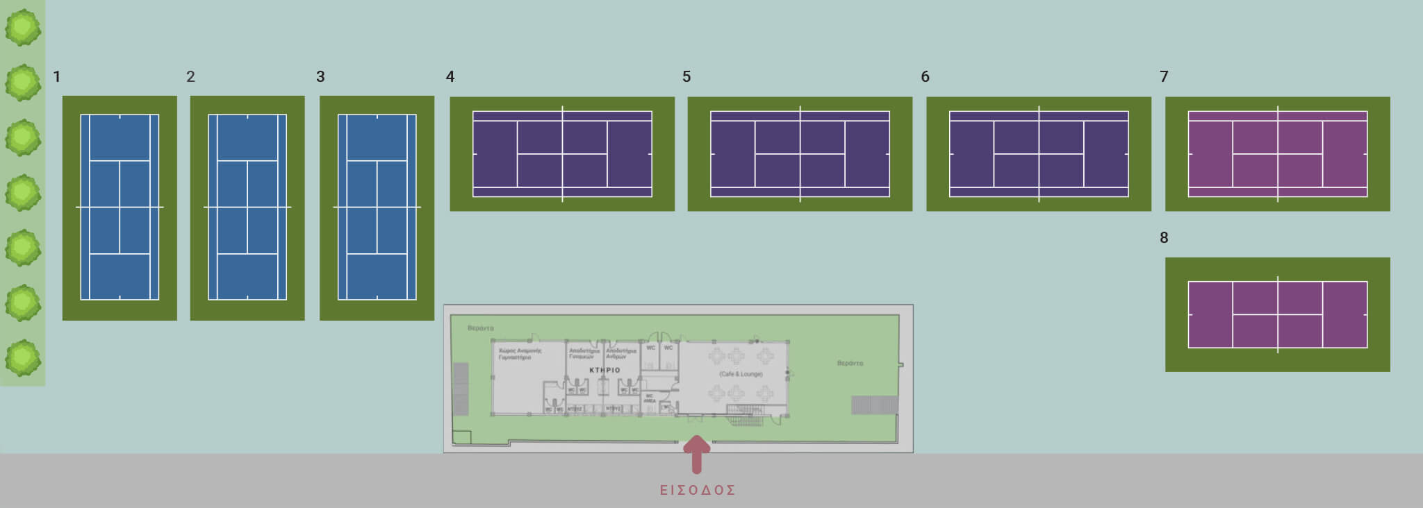Επιφάνεια: Σύστημα ακρυλικού συνθετικού τάπητα Supersoft της Ιταλικής εταιρείας Casali Sports www.casalisport.com/en/supersoft_ws